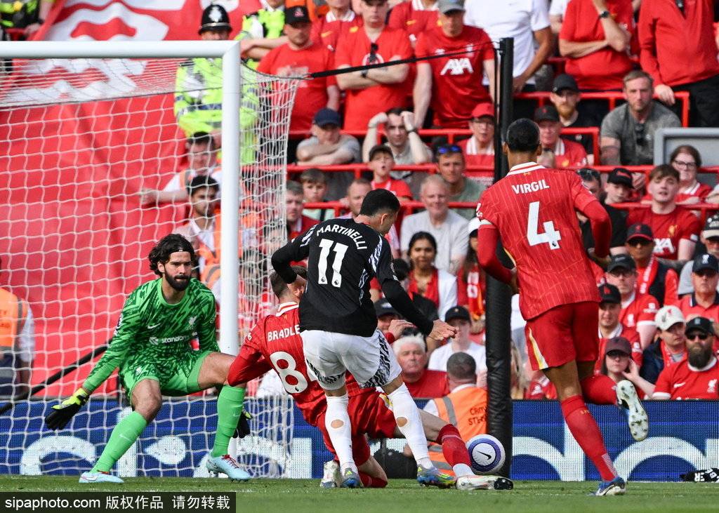 北京时间5月11日23时30分,2024-25赛季英超联赛第36轮展开角逐,新科冠军利物浦坐镇安菲尔德球场2-2战平10人阿森纳,连续两轮不胜。加克波和迪亚斯连续进球帮助利物浦2-0领先,马丁内利和梅里诺下半场连入两球扳平比分。此后,梅里诺吃到本场比赛个人第二张黄牌被罚下,罗伯逊读秒绝杀被吹。阿森纳结束三连败,但连续5场不胜,目前以2分优势力压纽卡斯尔排在第二名。